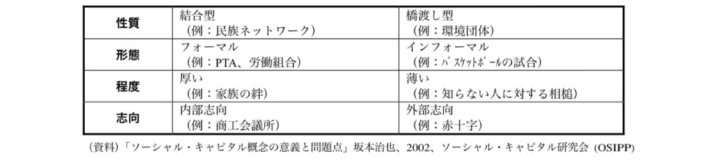 ただ、人々の間の信頼度、互いの利益を尊重する程度、助け合いの程度といった、社会における人間関係の結びつきの量や質を扱ったものであると言うことができるかもしれません。