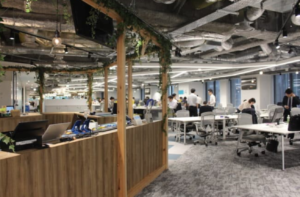 三菱地所のオフィスはとても革新的で、フリーアドレスやカフェなど快適に働ける仕掛けが満載です。