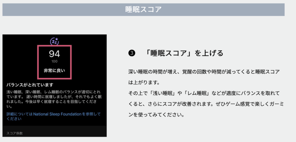 そしてスマートウォッチ各社がそれぞれの「睡眠スコア」を出していたりします。