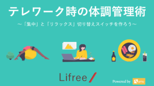Lifreeでは、食事・運動・睡眠等の改善によってテレワークでお仕事をする方々の