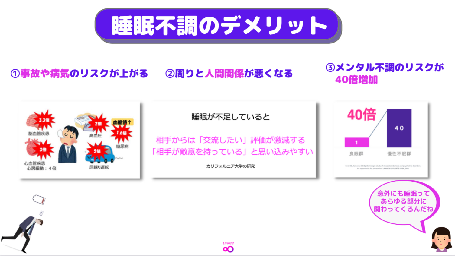 では、ここでLifreeのプログラムは他の睡眠セミナーや改善プログラム、健康施策セミナーとどこが違うのか