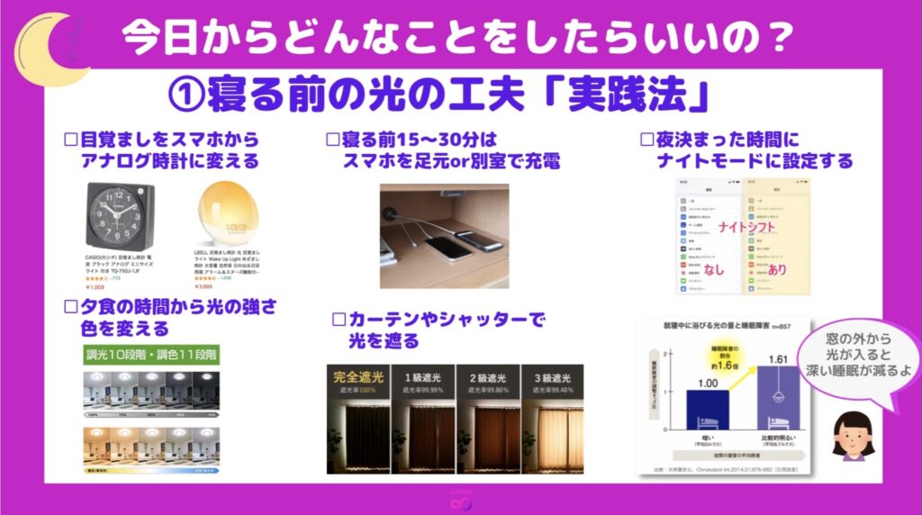 楽しいプロセスを踏みながらも、あくまでしっかりと改善行動につなげていくことが我々の睡眠改善です。