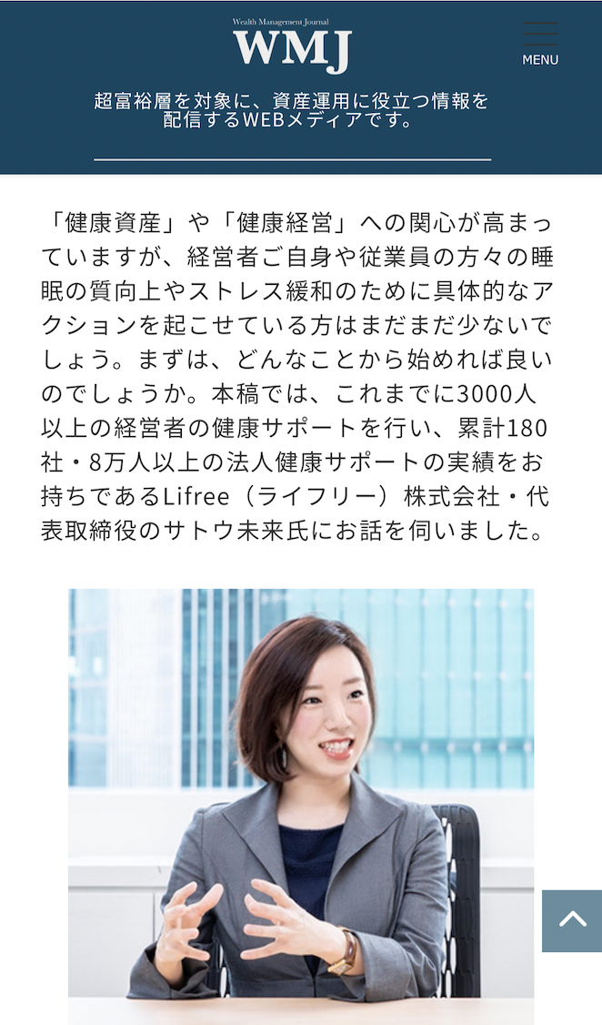 この度、富裕層向けメディア「Wealth Manegement Journal」に弊社代表 サトウ未来が取材・掲載されました。